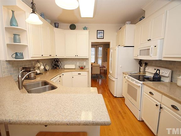 Adorably charming FIRST FLOOR MASTER! 3BR plus bonus with loads of updates! Spacious kitchen features gorgeous subway tile backsplash and quartz counter tops. White kitchen cabinets and a bright breakfast nook with skylights. Separate dining room with tray ceiling and beautiful bay window. Tailored picture molding. Hardwoods throughout and tile floors in baths. First floor master features sep tiled shower and jetted tub. Double vanity and large walk-in closet. Two good sized beds and bonus up. Don't miss!