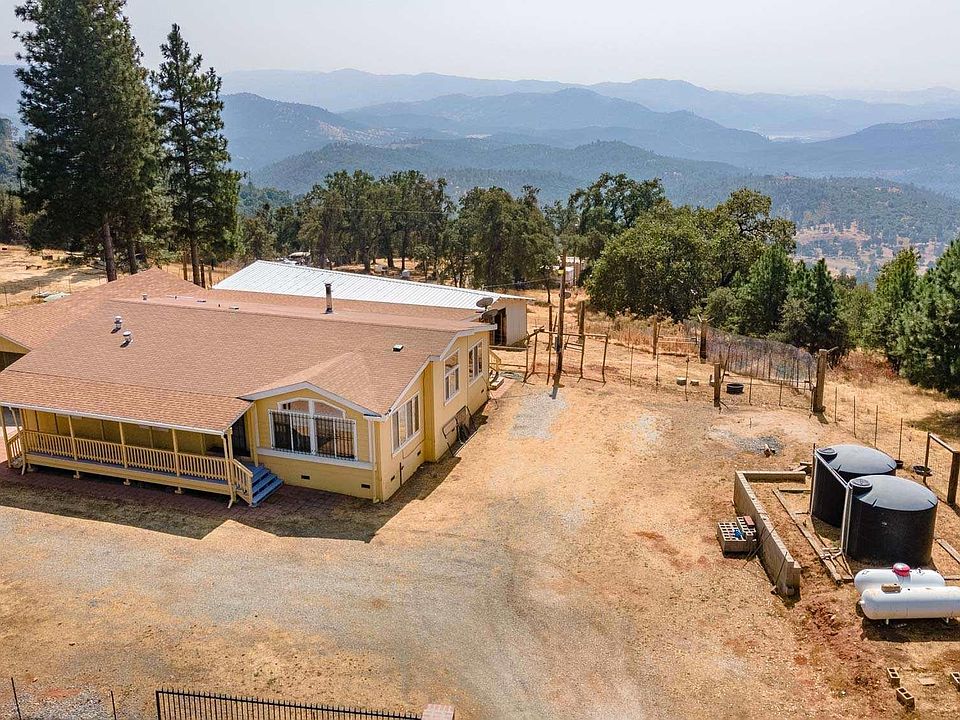 Fantastic valley views from this lovely 11 Acre Ranch in the mountains. Well maintained and roomy triple wide manufactured home on a permanent foundation. 2041 Sq Ft with 3 bedrooms 2 baths, den and office. Covered deck and sun room to face the view extends living even further. Large open kitchen with breakfast bar and island. Master has walk in closet with organizers, large bath soaking tub and separate shower. 2 car oversized garage and a 30 X 70 metal clear span barn. Property is fenced and cross fenced. 450' deep well and two 2500 gallon storage tanks with a whole house water filter. All additions and outbuildings are permitted. AC new in 2020, R 32 insulation, security gate. NOTE: DO NOT FOLLOW GPS DIRECTIONS. TAKE GREELEY HILL ROAD (J132) FROM COULTERVILLE ALL THE WAY UP TO FISKE ROAD, TURN LEFT THERE, VEER LEFT ONTO DEXTER, LEFT AGAIN ON CUNEO, RIGHT ON JACKASS RIDGE ACCESS AND LEFT ON JACKASS RIDGE RD, FOLLOW ARROW UP TO PROPERTY.