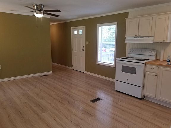 Completely remodeled interior, new stove and refrigerator, new lighting fixtures and fans, new laminate flooring, new interior paint and new front and back porches. 12 months; small dog or cat allowed, no smoking no utilities included