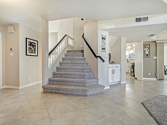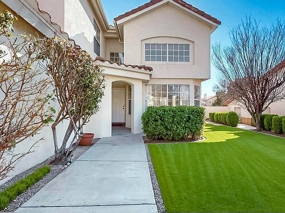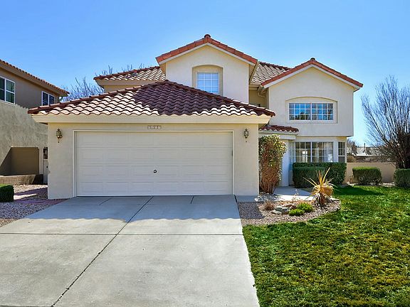 Wonderful updated Nor Este Estate home, with high vaulted ceiling in living room and family room. Backs to Nor Este Park, perfect for morning walk or walking dogs. Did I mention in a cul-de-sac too. Bright and open floorpan. One bedroom and a full bath in first floor. Extra large balcony off master bedroom to enjoy the view of Sandia sunset and city lights. Recent updates - Quartz kitchen counter, kitchen pendant lighting and recess lighting, new faucets, new paint throughout, new baseboard, newer hot water heater, new microwave. Other updates included radiant floor heat in tiled area, induction cooktop, custom built-in shelves in family room. Short walking distance to La Cueva High School and Desert Ridge Middle School. Oasis backyard with cascade fish pond and seasonal flowers.