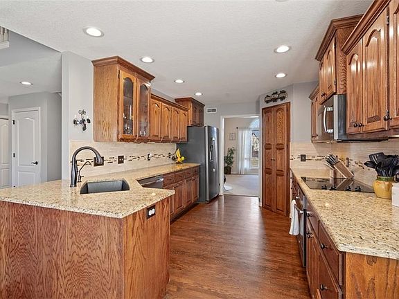 Beautiful home located in the desirable Estates of North Brook. Home is located just minutes from HWY 152, I-35 and I-435 making commutes to downtown Kansas City very simple. The main floor features hardwood floors, luxury granite countertops and smudge free platinum surfaced appliances. Enjoy the gas fireplace in the spacious living room located just off the master bedroom. Master bedroom and laundry are located on the main floor making this home a perfect fit for buyers looking for main floor living. The basement is perfectly designed to entertain family and friends with luxury vinyl flooring, a custom built bar, full bedroom and full bathroom. Don't miss an opportunity to purchase this amazing home! Buyer and Buyers Agent to verify all taxes and measurements.