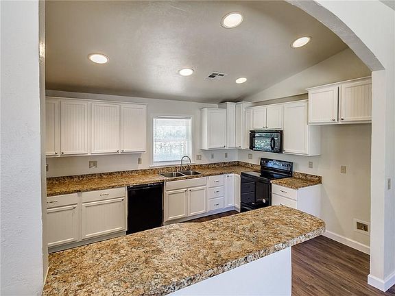 Absolutely Gorgeous country home on a lovely, wooded 1.27 acres. Plus a BARN! And a STORM SHELTER! The country kitchen is HUGE and the vaulted ceilings in the kitchen and living room open it up so it's very light and bright and feels so spacious. The fresh paint and the just replaced laminate flooring & carpet make this home look like new. Large rooms, extra wide doorways and easily accessible bathrooms make it easy to get around in this home. There's also a large deck off the dining room that would be a great place for morning coffee and cook-outs. Best of all there's also a 400 sq ft BARN/SHOP with an extra tall overhead door and an additional 480 sq ft of COVERED PARKING/storage that's attached. Have a motor home? a boat?..there's a separate metered outside electric hook-up pole too.Since the home was ASSEMBLED ON SITE with a PERMANENT FOUNDATION and is not a mobile home it should be eligible for most types of financing. .USDA, VA, & FHA, and Cash is always welcome!