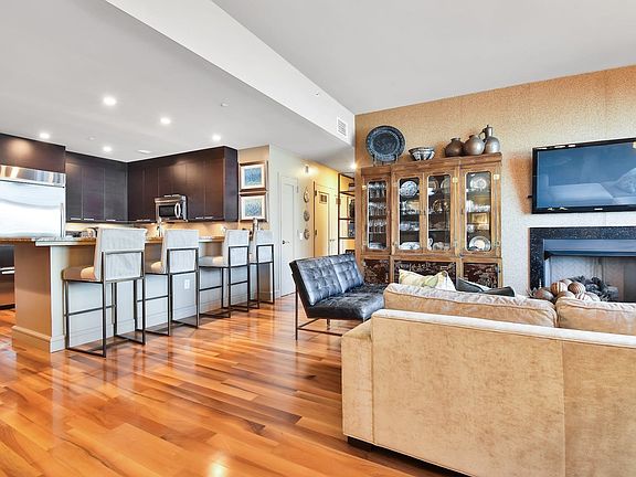 Welcome home to The Watermark on the Hudson, Gold Coast's most luxurious white glove building! This rare, 1588 sq ft 2 bedroom 2 bath smart home offers 10.5ft high ceilings lending dramatic views of the River and NYC Views, plenty of natural light, hardwood floors, maplewood kitchen cabinetry w/ granite countertops, S/S appliances, garbage disposal and pantry for extra storage. Alexa built in & compatible switches and outlets throughout the home. Nest Thermostat that learns your schedule and programs itself to help you save energy! Primary Suite w/ marbled bath, his and her sinks, and linen closet. Gas fireplace in the spacious living room not only offers the perfect ambiance but also to keep you warm on those cold NJ winters! Over 40,0000 sq ft of amenities including indoor/outdoor pools, fully equipped health club, Childrens' play rm, media, rm golf simulator, business center, hot tubs, private shuttle to Weehawken Ferry, valet, 24 hr concierge and more!!
