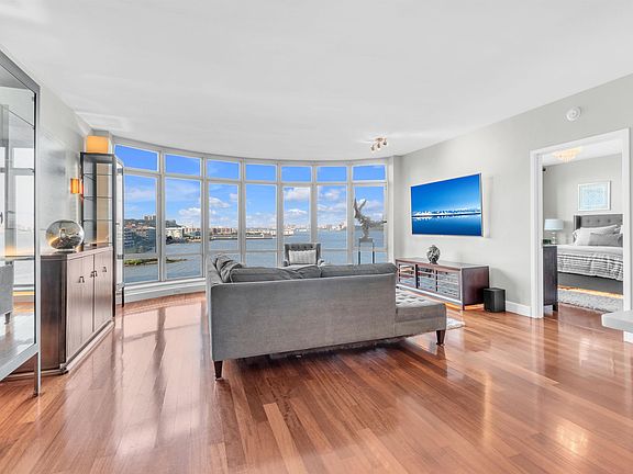 WELCOME TO THE PRESTIGIOUS NJ GOLD COAST. The Ultimate Lifestyle along the most desired waterfront awaits you! The Watermark on Hudson is a full-service luxury building. This spectacular 7th floor, 2bedroom/2bath residence boasts 1365 Sq. ft, 9ft ceilings with unobstructed breathtaking views of Manhattan, GW Bridge and the Hudson River from every room. This Gorgeous unit has floor to ceiling curved windows in the living/dining room, gourmet kitchen with custom cabinets, all stainless appliances, upgraded white quartz countertops, stainless steel undermount sink, and stunning herringbone tile backsplash. The master suite features marble spa like bathroom with spacious custom closets in both bedrooms. Additional features include: In-room laundry, central HVAC (heat included with HOA) also comes with 1 car garage. The Watermark on Hudson boasts 40,000 sq. ft of world-class unsurpassed amenities: Doorman, Valet, 24 Hour Concierge, 2-story grand Salon with bar and gourmet full size kitchen, Indoor/Outdoor Pools, Jacuzzis, BBQ Grills, State-of-the-art Health Club with Yoga, Sauna, Steam & Massage Room, Luxurious Screening Room, Billiards room with pool table and lounge, Golf Simulator, Library, Children's Playroom, Conference Room, and Hotel style guest Suites. Free private shuttle to/from NJ Port Imperial ferry terminal and Light Rail. NYC bus stop on the side of building. Don’t miss this rare opportunity and take advantage of the recently reduced tax rate.