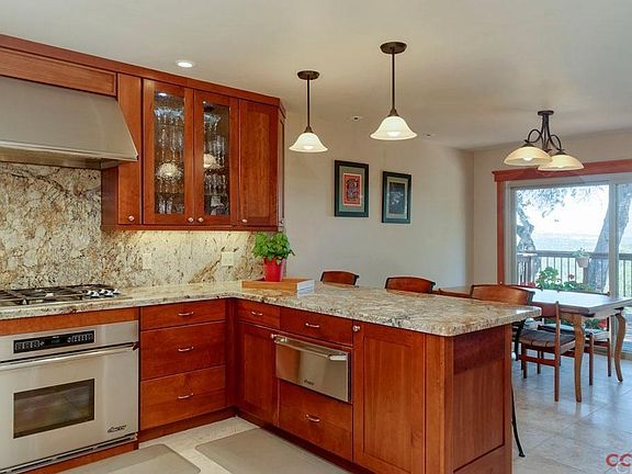 Want privacy and live in a fabulous neighborhood? This is it! The immaculate three bedroom, 2 1/2 bathroom home has a beautiful custom kitchen with Dacor stainless appliances, gas cooktop, cherry cabinets and extensive granite counter tops. Gorgeous! An adjacent dining area off the kitchen has spectacular views, most of the house boasts stunning views from all the large picture windows. The master bedroom, with seating area, is privately situated. The master bathroom has granite counter tops, 12 drawer double vanity and a large step-in tile shower, all with on-demand' hot water. There is a separated living room and family room, plus a hobby room on the lower level and a wine cellar area. Two large decks and a fabulous side patio overlooking the grounds are perfect for entertaining. The entry, driveway, and patio are crafted from over 3,000 square feet of stamped concrete. Incorporated in the renovation was an engineered seismic strengthening foundation and shear wall plan.