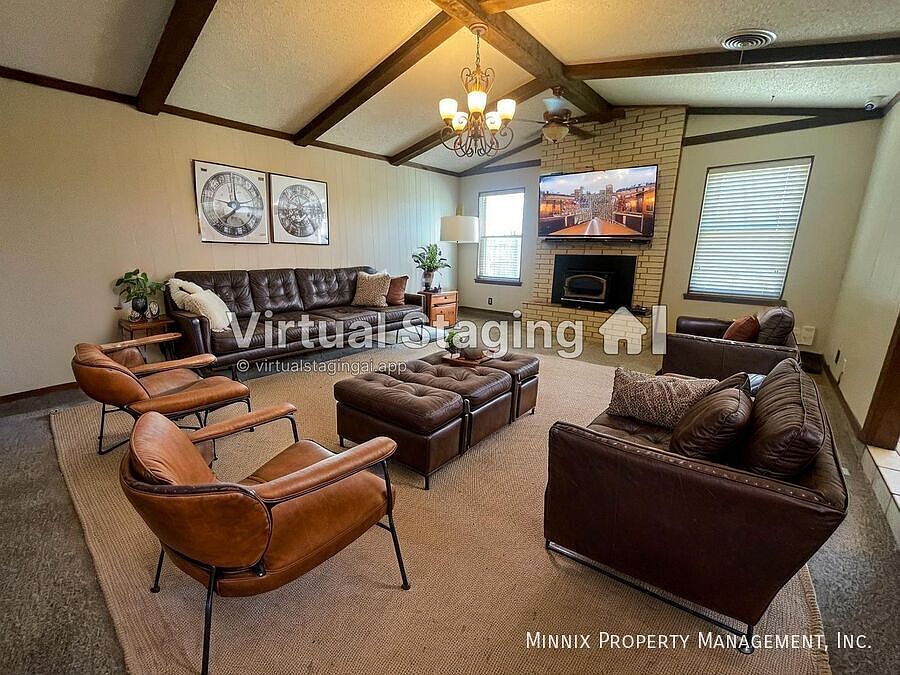 Huge living room with beautiful, beamed cathedral ceiling and a heatilator fireplace that will keep you warm and cozy all winter long. Offered by Minnix Property Management. This home is available for a 12-month lease. This property is available for self-guided tours! 7 am to 9 pm, 7 days a week! Pets are welcome with a $400 refundable per pet deposit. We comply with Fair Housing Guidelines when it comes to Service Animals and Emotional Support Animals. Vacant properties are held no more than 21-days. A deposit is required to hold the property. Renter's insurance is required for all properties. $24.99/Month Minnix Resident Benefit Package effective 2/1/2024: $0 Security deposit when using our deposit alternative that reduces your move costs. You may still use a traditional cash security deposit. Free Security Deposit Review - Don't agree with the charges at move out? Get a free independent review of your charges. Rent Plus - Credit reporting for on-time rent payments to build your credit! Automatically enrolled, opt out available. Flexible Payments - Administered by Best Egg Pay when you want so you can do more of what you want. Best Egg is built into your online portal that pays your rent on the first and allows you to pay back on your terms. Free Online eCheck - Pay your rent only with no additional fees if using the eCheck option. Rent Check - Conveniently and easily document the condition of your residence when requested. DAVE - Get an advance up to $500. Get more money to help cover rent, fill your tank, tackle your to-do list, or take advantage of a now-or-never opportunity. Missed Appointment Fee Reimbursement - Missed that maintenance appointment? No worries, you may be eligible for reimbursement. Lockout Reimbursement - Reimbursement coverage just in case you do lock yourself out. Free Drain Maintenance Packs - Get a free supply kit to help with clogged or slow drain issues. Move-in Promise - Peace of mind that all maintenance requests made in the first 30 days are completed in 2 weeks! Overnight Stay Reimbursement - Maintenance issue force you to stay in hotel? Reimbursement available! Moving Concierge - Get personalized help for your move in or move out and more! Accidental Damage Coverage - Get $1000 back on accidental damages to the property! Early Termination Options In this ever-changing world, we know that things change. Minnix Property Management works with you when the need for an early termination arises. Photos and Video may not be an exact representation of this property. Information herein deemed reliable but not guaranteed. 2 Car Garage Beamed Ceilings Corner Property Heatilator Fireplace No Utilities Included Walk In Shower Zero Deposit Move In Option
