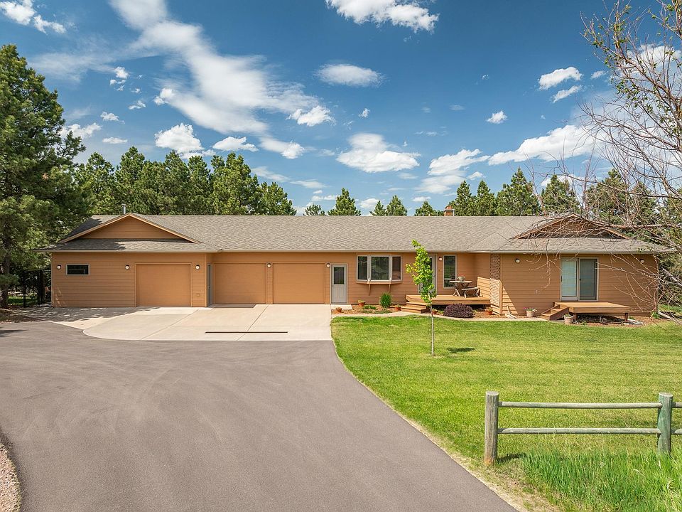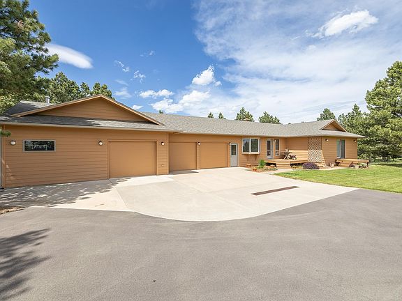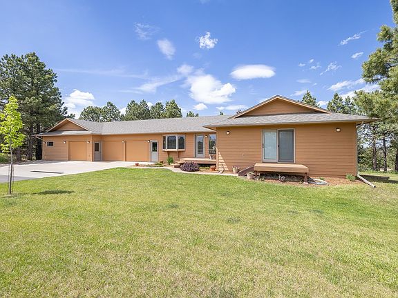 Perched upon a serene South Dakota hilltop, this charming property is home to breathtaking views, abundant wildlife, and a tranquil forest setting. The gorgeous 2.46 ac. lot is a perfect sanctuary for this well-built, one owner 3184 sq ft ranch style house w/ 5 bedrooms, 3 bathrooms, 3 car garage and shop! The main level layout accommodates a master bedroom on-suite with a walk-in closet, and an additional 3 bedrooms, and full bathroom. The lower level and walk out basement provides great natural light, a perfect family room, 5th bedroom, 3/4 bathroom, and an extra large storage & utility room. The recently constructed 32x24 shop addition is immaculate! Other major improvements include paved driveway, flat work, class 4 shingles, city water line (2015), main level pre-plumbed for laundry and additional vanities, HVAC, fresh paint, new basement door, and several new windows. Don't miss the opportunity to own this idyllic property where nature, comfort, and convenience meet!