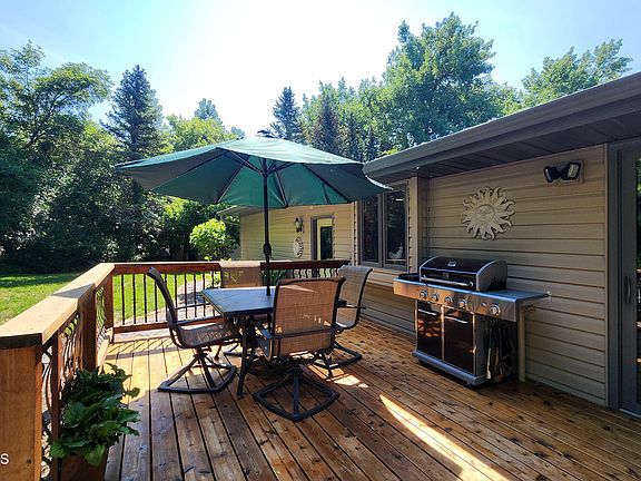 Your own outdoor oasis awaits with abundant wildlife and a great location, compromising perfectly between rural life and access to amenities! This private, wooded property boasts a patio with pavers procured from the ND State Capitol, a custom fireplace, designer patio furniture, grill, pergola with hot tub and bar seating, and a deck a dining area. A chicken coop (could be used as a dog kennel if you prefer fur over feathers) is housed next to the three-stall shop. You'll also find a firepit and seating area, pond, and landscaped areas throughout the property. The siding is from ABC Seamless and the new roof is from 2020. Rural water membership is included, but you can also find your own private well here, too. This property has been meticulously cared for outside AND inside. The new furnace was installed in 2022 to compliment the air source heat pump and electric plenum heater. All light fixtures, outlets & switches, and all plumbing fixtures have been updated throughout the years. Sump pits and pump locations designed by engineer and installed following ground water impact from 2011 flood. Home systems have had continual maintenance checks by professionals though out the years. The kitchen has custom cabinets with a pantry wall FULL of cabinets and granite countertops. There is a convenient half-bath adjacent to kitchen, garage, and mudroom. Custom touches are found throughout the home from upstairs bay window, wine nook built-in on lower level, and custom bar in basement. The lower-level bath/laundry has beautifully updated cabinets with tons of extra built-in storage. A wood-burning fireplace warms up the lower level. The basement rec room has industrial finishes and custom bar. The primary suite has a larger bathroom than typically seen for the age of home and has a large closet as well. The multi-level layout keeps things welcoming, open, and bright. The attached garage is heated and nicely finished. We could go on for days with the features of this home, but we want you to have time to look at it! PLEASE ask your agent to see the 3 page document with the list of amenities provided by homeowners.