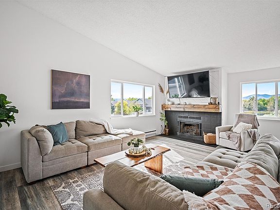 On chilly Colorado nights, you can cozy up by the Wood-Burning Fireplace, complete with a custom mantle, creating the perfect ambiance. Brand New beautiful white kitchen cabinets, enhanced by Stainless Steel appliances and open shelving, are both stylish and functional. The primary suite boasts LVP flooring, leading you to a walk-in closet and an en-suite bathroom with updated vanity and custom light fixture.