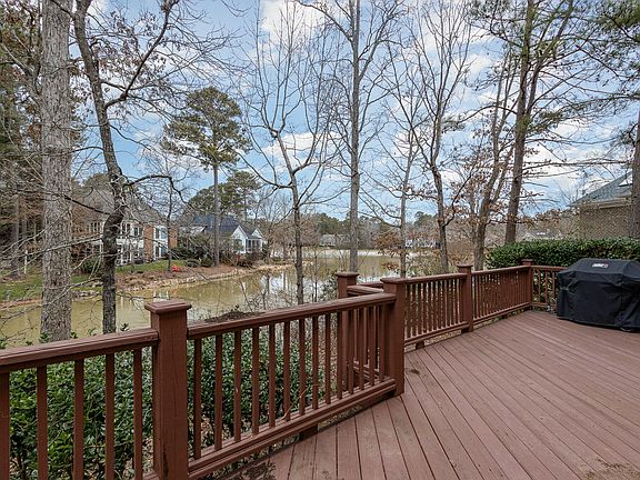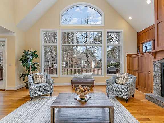 A spectacular ''Gem'' with a Water VIEW in Governors Club; Chapel Hill's gated community, home to the 27-hole, Jack Nicklaus Signature golf course. Enjoy tranquil VIEWS of Lake Morehead from your expansive Living Room, or your Study. Relax on your deck to be at ''one'' with the lake OR share with friends al fresco dining and a VIEW overflowing with the riches of natural significance: watch turtles bask in the sun, remark as the statuesque Blue Herons slowly strut by and be amazed by the Bald Eagles perched proudly. In the Fall, enjoy many species of Ducks! These Views are subtly accompanied by the cacophony of sounds of nature. Thougthful landscaping includes a number of rare trees (Beech & American Elm, among others). Huge Main level (LR,DR, Office ,Kitchen ,PBR); living room has a stone fireplace, cherry built-in cabinetry with a gorgeous, serene lake view; Versatile Dining Room; Spacious Primary BR; & separate Laundry Rm. 3 Bedrooms upstairs plus a BONUS ROOM with endless opportunities! A rare find, in Governors Club, promising a rejuvenating escape from the hustle and bustle. Close to UNC, Duke, airport, Chatham Park and great medical.