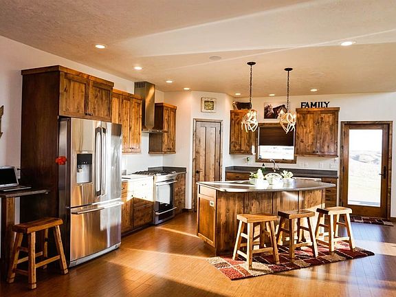 2012 Custom Built home on 2.04 Acres with a stunning view! The rustic design of this home was well thought out and boasts an open and inviting kitchen, dining room and living room area. The custom cabinetry features soft close drawers and doors, pull-out shelving for convenience and a walk-in pantry for extra storage. The kitchen also features stainless steel appliances with a gas cook-top and an electric oven and Corian countertops. The cork flooring runs through the kitchen, dining room and down the hall to the master bedroom and laundry room. The spacious master bedroom features an en-suite bath with walk-in tile shower, soaker-tub, dual sinks and walk-in closet. Off of the master bedroom there is an additional 1/2 bath and a sizeable laundry room. Off of the kitchen is a comfy living room with grand windows and a gas fireplace. Upstairs you will find a charming family room with views of the coulie, two additional bedrooms and a full bath. Just off of the dining room is a nice-sized entryway to the garage that features a walk-in coat/storage closet. The over-sized three car garage is finished, has floor drains and in-floor heat along with a 1/2 bath. The yard is finished with perennials, trees, Trex decking and a shed for additional storage. This custom home with amazing views does not come along often so don't let it pass you by! Check out the 3D showcase for a virtual tour.