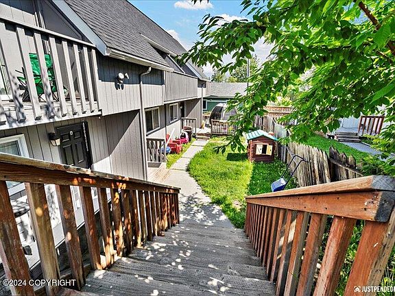 Well maintained South Anchorage fourplex rental property. All units townhouse-style with living space and half bath downstairs, both bedrooms, laundry, and full bathroom upstairs. All units have their own heating system and pay their own gas/electric. Fourth unit has additional ADU-type third level with it's own exterior entrance. Lots of recent updates, turnkey property.