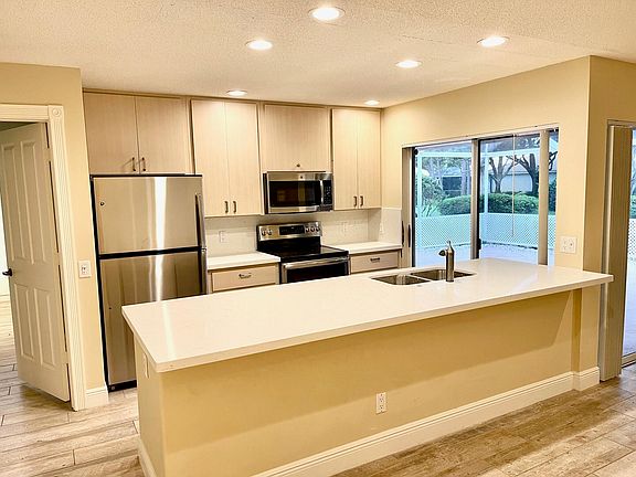 Don't miss out on this rare find 2b/2b villa in the heart of Palm Beach Gardens. Sun Terrace at the Oaks community is highly desirable for all age group. Open floor plan with hardwood and Tile floors throughout & Stainless Appliances. Brand new quartz counter tops for the kitchen and two bathrooms. Split bedrooms and huge screened patio with large storage closet , a lot of privacy on courtyard side for barbecue & entertain. Accordion hurricane shutters. HOA covers basic cable service. Small pets okay. Community is surrounded by the Gardens Mall, Whole Foods, Trader Joes, Publix, Library, Post Office, Downtown at the Gardens, Midtown, Legacy Place and countless restaurants and shopping. 10 minutes to beautiful beaches, 20 mins to PBI airport. Tenant insurance required.