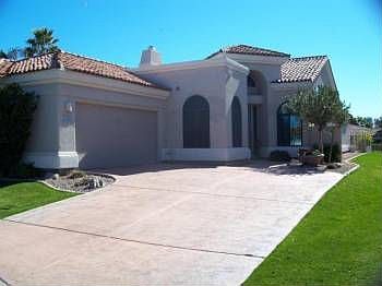 Elegant residence inside Scottsdale Country Club East.. Upgraded slab granite counters with sparkling stainless steel appliances in a beautiful, open kitchen. Great room has views galore. Custom flooring, custom plantation shutters and designer wall treatments through out the home. Four spacious bedrooms. Backyard has lovely pebble tec pool with a retractable awning for those warm days. Amenities include 24hr. Guard gated service, tennis courts and weekly front yard landscaping maintenance.