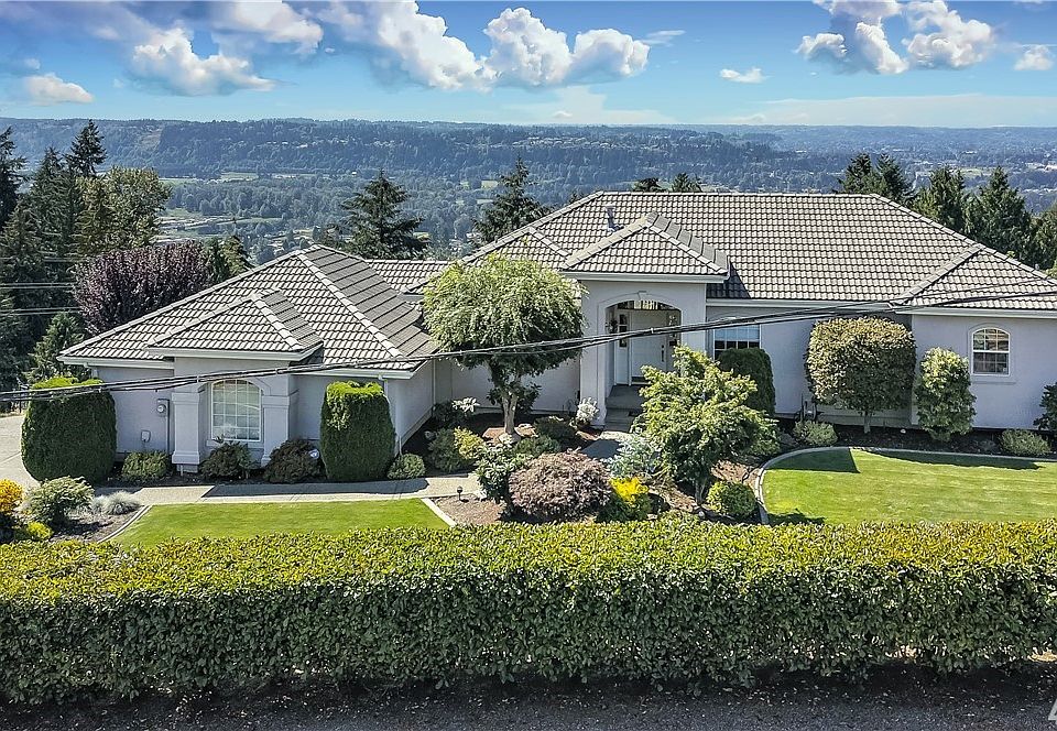 Live above the clouds! Spectacular custom home with breathtaking sunsets and ever-changing sweeping views of the valley, city and mountains. Living and dining room with gas fp, view windows and decks. Kitchen offers granite, hardwoods, breakfast bar. Main floor owner's suite with 5-piece bath & walk in closet. Lower level lives large w/family room, wet bar, open to back and view. 2 bedrooms & full bath round off this level. Also: Heat Pump, 3 car gar, 4th BR/Office. This home is simply stunning!