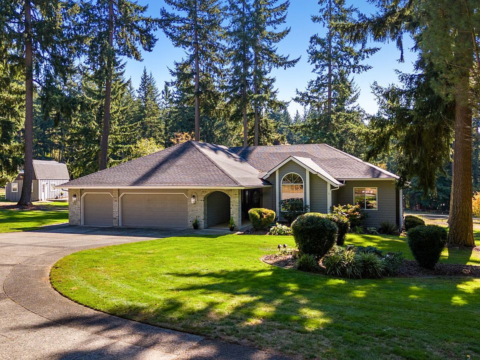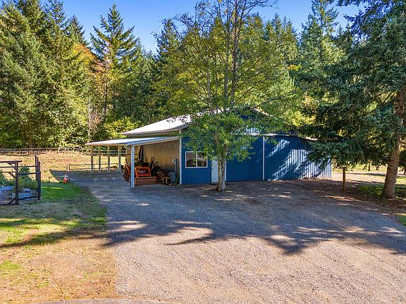 5-Acre 2022 Renovated 2,510 Sqft Ranch Home with a 676 Sqft Detached cottage. Nestled in a private dead-end community with other acreage homes. This home offers modern luxury and rural charm. The main residence features 3 bedrooms, two fully remodeled bathrooms, and an open-concept design the home has a new roof, HVAC system, Paint inside and out, plumbing fixtures, flooring, lighting & beautifully redesigned kitchen. When you enter the home, there is attention to detail that was given to the crown moldings in many area's & doorways. The generous sized vaulted living room & dining room, where you will notice the unique inverted cove ceiling and traditional light fixture. These features are complemented by wood windows with decorative trim, adding to the home’s sophistication. The center piece of the Gourmet kitchen is a 6 x 6 island with Quartz countertop. Surrounding the island are 3-year-old Kitchen Aid Professional Series stainless steel appliances which includes a 5-burner gas cooktop. double oven with convection, Refrigerator, dual zone double door wine storage and ultra quiet dishwasher, large Quartz countertop area and custom solid wood cabinetry. The high ceiling of the large great room which focuses on a floor to ceiling custom brick fireplace alcove with a beautiful wood stove. The double door entry to the primary bedroom is a true sanctuary, complete with direct access to a private covered for shaded relaxation. The completely updated double vanity bathroom with comfortable height toilet and generous frameless shower, will make get your day. The expansive outdoor area is ideal for gatherings or evenings under the stars with the most amazing Sunsets you will see.A detached 1-bedroom guest house with patio could provide rental income. Extra space in the 37x48 metal sided barn w/concrete floors & 220 elec service, 2 12x48 lean to's ideal for workshops, storage & Stalls. Just 25 min to PDX & Waterfront. 7 min to resturants and Stores. Seller is a lic.Agent.