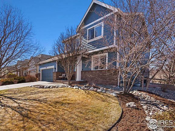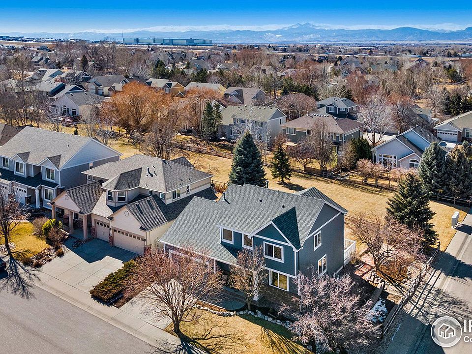 Welcome to this captivating two-story treasure, perched on a spacious corner lot and backing to a beautiful greenbelt. As you step through the front door, you will appreciate the flexible, well-designed layout framed by soaring ceilings. The hardwood flooring further enhances the modern interior, which flows seamlessly throughout the main living areas. The large, light-filled kitchen features stainless steel appliances and generous counter space for all your culinary adventures. Soft-close cabinets, a center island, and a spacious pantry keep your provisions neatly tucked away. A gas fireplace and built-in shelving bring a warm, inviting ambiance to the living area. Ascend to the upper level, where a loft provides a versatile space for your passions or pastimes. The primary suite is a private sanctuary crowned with mountain views, vaulted ceilings, and a 5-piece ensuite bathroom featuring a soaking tub, glass shower, dual sinks, and a walk-in closet. Two additional bedrooms complete the upper floor, offering a private niche for everyone. Imagine the possibilities in the unfinished basement with a rough-in for an additional bathroom, awaiting your unique touch to bring it to life. Step outside onto the large deck with a pergola, where two roll-down sun shades provide the perfect balance of shade and sunshine for outdoor enjoyment. Surrounded by mature landscaping, raised garden beds, and raspberry plants, this outdoor oasis is the ideal setting for entertaining guests. Plus, with wiring in place for a hot tub, the stage is set for ultimate relaxation and indulgence. A three-car tandem garage offers ample space for your vehicles, bikes, and gear. A short distance to parks and natural areas, and easy access to Loveland and Fort Collins. Brand new furnace!!