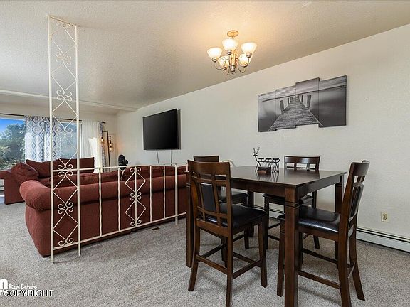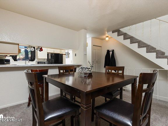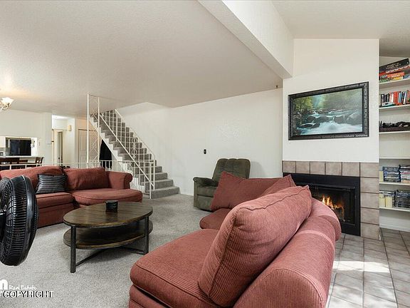 VA Assumable Loan! Discover this townhouse-style condo with a 1-car garage! This 2-bedroom, 2-bathroom unit spans 1,100 sq ft and features an oversized garage with space for laundry and storage or a workspace. The main floor has a large living area with a large window to enjoy snowfall while cozying up by the fireplace. Both bedrooms are located on the third level.Don't miss out on this home! VA Assumable at a 2.875% interest rate, 6 minutes away from the JBER Boniface Gate.