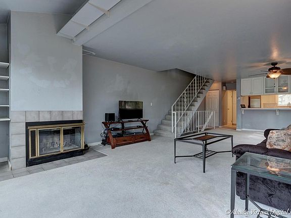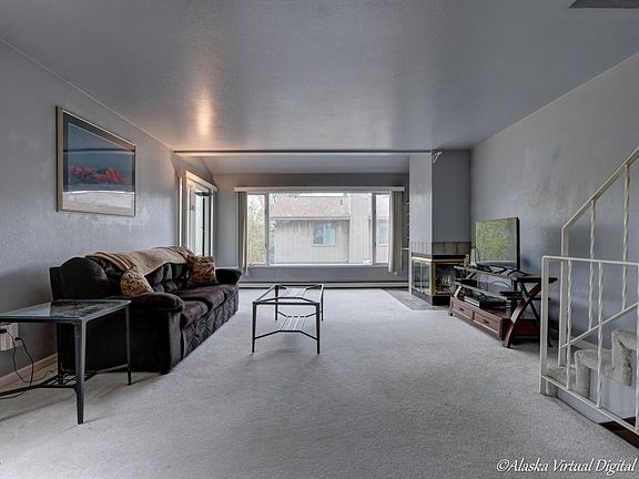 Beautiful unobstructed mountain views. End townhouse style unit with extra large garage, lots of windows and great light. Excellent location to Military bases. Close to Tikahtnu Commons shopping, dining and theatres and easy access to downtown. Stylish townhouse style condo which features a steam shower built in the garage. Newer boiler and hot water heater. Carpets professionally cleaned