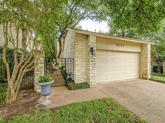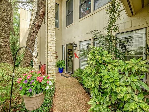 Free standing town home with gorgeous courtyard entry,towering trees leading to peaceful gardens & deck creating a beautiful view from the living area & downstairs master suite. High ceilings, flooded w/ natural light, 2nd living/den up & loft. Plantation shutters,crown molding, spacious kitchen, granite counters, stainless appliances, breakfast area in addition to formal area for dining,laundry room & abundance of storage. Recent counter & wallpaper in powder room. Loaded with charm & pride of ownership!!! Located in popular Northwest Hills neighborhood!!!
