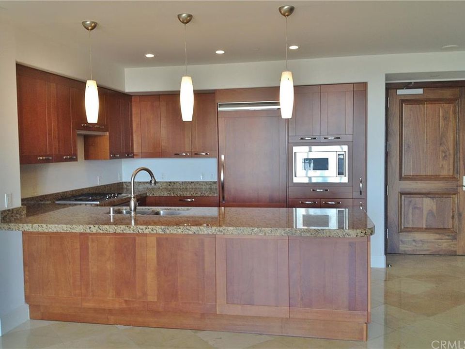 Spectacular home located on the 10th floor in luxurious high rise with panoramic views of city lights, hills, trails & romantic sunsets. Open floorplan + den/office with extensive elegant built-ins. Tastefully upgraded w/marble floors, European cabinets, electronic shades, top of the line appliances, gorgeous granite counters, warm tones on walls, built-in at media niche and bookshelves, marble/stone baths, seamless shower doors, upgraded neutral carpet, upgraded sound system package, serene balcony..perfect for entertaining. You must see this home! Close to beach, shops, Fashion Island, South Coast Plaza w/world class shops, transportation corridors, John Wayne airport, business centers, and UCI.