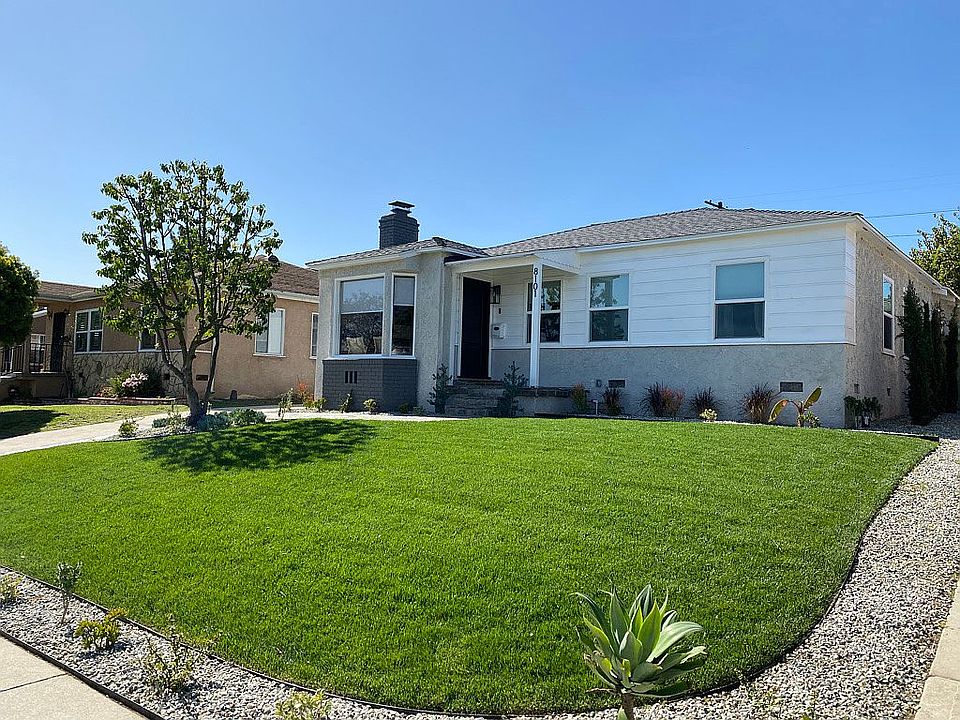 Welcome to a beautifully renovated single story bungalow nestled on a picturesque tree line street in prime North Kentwood. Upon entry you are greeted with tons of natural light and a floor plan which flows beautifully. The exceptional design detail expressed through the updated colors, solid hardwood floors, finishes, recessed lighting, windows, hardware and branded fixtures give a sense of quality and happiness throughout. The quartz kitchen presents perfectly styled backsplash, stainless steel appliances and a breakfast area which flows harmlessly to the open living room. The all new large master suite features high beamed ceilings, walk in glass shower, quartz counters, custom contemporary closet and French doors leading to the lush back yard. The two other bedrooms are light & bright with ample closet space & accompany a large dual sink second full bathroom. Enjoy your spacious back yard with an alluring brick trimmed patio, colorful plants, fruit trees and plenty of privacy. This home is perfect for entertaining or kicking back and relaxing. Located just minutes from the beach, Playa Vista, and all of the Westside's popular shopping and dining.