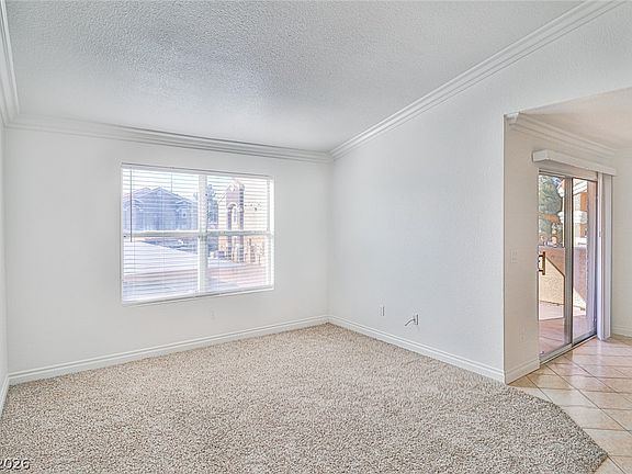 Beautifully upgraded 2-bedroom, 2-bathroom condo located within the gated Copper Sands community. Spacious bedrooms each include a walk-in closet. Crown molding and modern finishes elevate the home's overall appeal. The gourmet kitchen offers granite countertops and stainless-steel appliances, opening to a bright living area with stylish tile flooring. The primary suite includes a Roman-style soaking tub, and a large private balcony provides the perfect outdoor retreat. Washer, dryer, ceiling fans, assigned carport, and ample guest parking included. Community amenities feature a pool, spa, and fitness room. Conveniently located with easy access to the I-215 freeway and just minutes from top restaurants, schools, coffee shops, and supermarkets. Welcome Home!