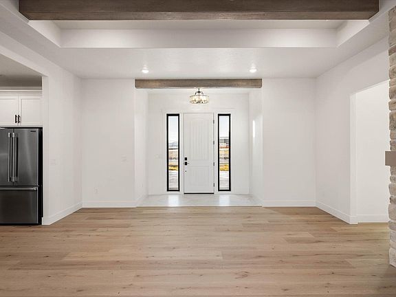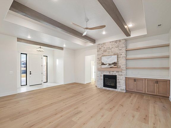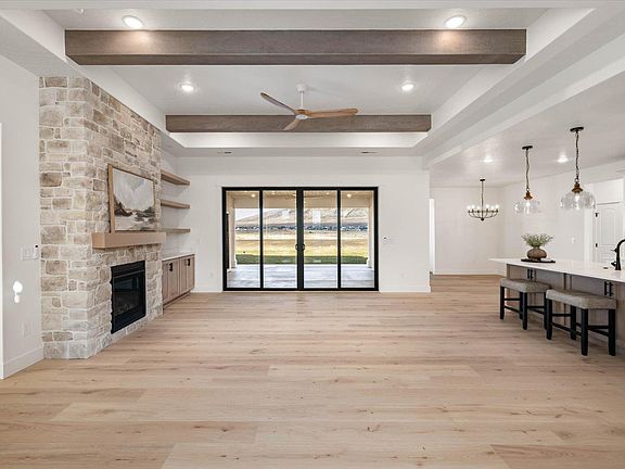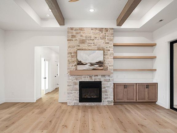MLS# 290159 Exceptional new construction by Stellar Homes on a rare one-acre lot in desirable Harvest Ridge. This 2,420 sq ft home offers 3 bedrooms, a den, and 2.5 baths, thoughtfully designed with the elevated craftsmanship and refined attention to detail Stellar Homes is known for. The open-concept living space is both elegant and inviting, featuring dramatic ceiling beams, a gorgeous stone fireplace, quartz surfaces throughout, and an abundance of natural light. The kitchen is a true centerpiece, showcasing Huntwood cabinetry, a generous island with cabinetry on both sides, under-cabinet lighting, and a high-end Frigidaire Professional appliance package. A gas cooktop perfect for chefs at heart and a refrigerator complete this beautifully appointed space. The primary suite serves as a private retreat with his-and-hers closets, dual vanities, and custom built-in shelving. Additional highlights include a heated 47’ RV bay with a 14’ door and RV plug, an oversized two-car garage with an 18’ wide door and EV plug, and an oversized driveway with ample parking providing exceptional versatility and space for all your toys. Set on an expansive one-acre lot with space for a future pool or shop, this home offers a rare opportunity in today’s market. Enjoy the tranquility of country-style living while remaining close to amenities, easy interstate access, and walking paths to the Country Mercantile, a beloved local destination known for its fresh foods and charming atmosphere. This home won't disappoint!