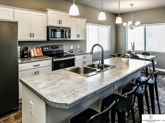 The wait for your new construction home is over. One year young Celebrity "Sheridan" floor plan. Enjoy your morning coffee on the deck over looking beautiful trees and open space. White and bright kitchen with island large enough for 4 stools. Drop zone / coffee bar off garage with pantry. Beautiful electric fireplace keeps your living room cozy in warm during the snowy winters. All window blinds, kitchen appliances, washer and dryer stay. Gain instant equity by finishing the basement!