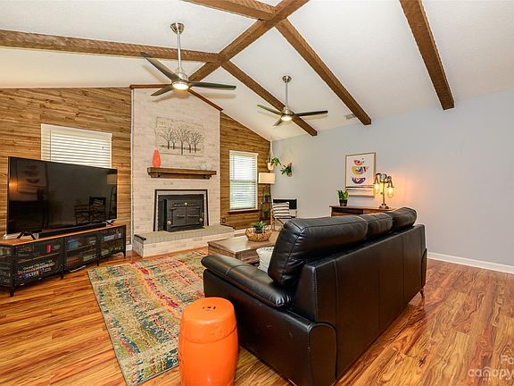 Dramatic Ranch located in Popular Beacon Hills! Charming Exterior AND Opens to Vaulted Great Rm with Beamed Ceiling & Full Brick Fireplace. Split Floor plan Includes: Primary Retreat w/Spacious Walk in Closet & Private Bath. Chef's Kitchen offers an abundance of white cabinets and Open to Sun-filled Dining. 2 Additional Secondary Bedrooms & Full Bath! Expansive Rear Deck Ideal for Entertaining or Private Retreat PLUS Additional Storage Building! Freshly Painted Inside & Out & Sits on Private Fenced Yard. Conveniently Located Near Shops, Parks & I485. GREAT LOCATION-GREAT HOUSE- WELCOME HOME!