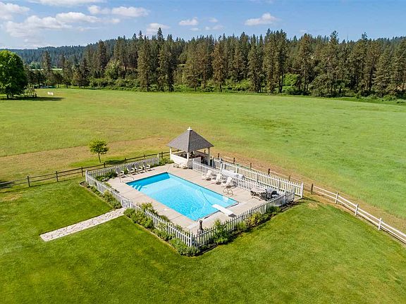 This timeless, inspired New England Farmhouse is more than a home, it's a lifestyle! Serene Hangman Valley 10 acre pastoral setting w/ Latah Creek frontage, beautiful treed backdrop & abundant wildlife. Lovely artistic blend of reclaimed heart pine wood, hearth fireplace & reproduction fixtures & hardware that give a simple, historic charm w/ modern conveniences. Shop/barn w/ chicken coop, garden w/ raised beds, greenhouse & fruit orchard. Outdoor delight: entertaining pool, hiking, canoeing & more.