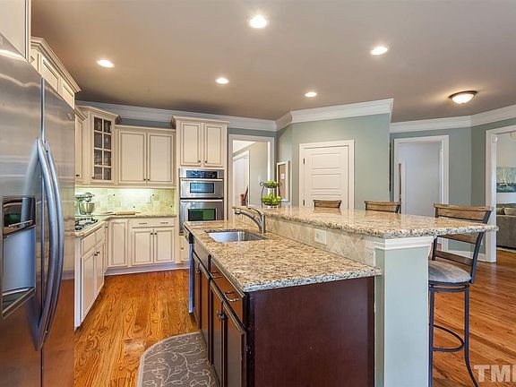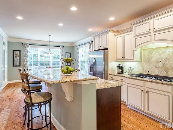 Elegant home by custom builder in prime N. Raleigh area! Enjoy the details! Solid wood front door, fresh paint in the two story foyer w/grand wood stair, hardwood floors throughout main living spaces. Gorgeous French country style kitchen with granite and ss appliances. Open floor plan, stone fireplace, custom shelves and coiffured ceiling in the family room. Bathroom access in every spacious bedroom, large bonus room, master with sitting area, beautiful screened porch & open air deck, fenced in backyard!