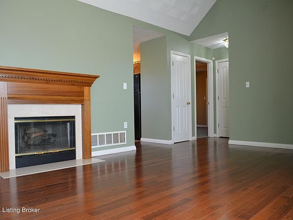 This wonderful 3 bedroom and 2 bath ranch style home with attached 2 car garage is located on a quiet cul-de-sac street. As you enter the home, you will immediately notice the beautiful hardwood floors, vaulted ceiling, and gas fireplace. A large picture window allows natural light to fill the room. The extra large primary bedroom has a trey ceiling with an ensuite bathroom. Other features: 2 good-sized bedrooms with double door closets, full bathroom, laundry closet, and eat-in kitchen with breakfast bar and plenty of cabinets and counter space. Off the kitchen is a wood patio overlooking a nice-size fenced-in backyard with a storage shed for additional storage. New HVAC system and new carpet in bedrooms.
