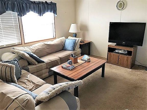 JUST REDUCED- MOTIVATED SELLERS!! - PARTIALLY FURNISHED - $15,000 This well cared for and loved home is a 1989 Palm Harbor. The air conditioning is only 4 years old, the shingle roof is new, the vinyl siding is easy maintenance so you will have years of worry free living on these items. The home has a front screened lanai to sit and visit with friends and family. The lanai opens to the living room which is nice cozy and large. The vaulted ceiling throughout the home gives the home an open airy feeling. The dining room is large enough for your friends to enjoy life with you over a meal. The kitchen has white cabinetry and counter top need some updating. The main bathroom has a newer tub-shower combination, new sink and faucet, and a new low water use toilet. The guest room is roomy and has a walk-in closet. The master bedroom has lots of room and currently has a king bed and rocker. This can be your quiet room to grab a book and enjoy your quiet time. The closet is very large and gives you plenty of room for your things. The master beth has a new walk-in shower. This is a Value priced home and waiting for your personal touches. You will have a large driveway on a large corner lot. Close to Harmony Pool and Hall. ACT FAST & CALL TODAY!! Don't forget to ask about the BANK FINANCING available on this home. Colony Cove is an age qualified (55+) five-star resort community of manufactured / mobile homes. The "Cove" boasts 5 clubhouses, 5 heated pools, a riverfront pavilion and private fishing pier, a private marina, a fenced dog park (very pet friendly), tennis, shuffleboard, new pickleball courts, 2 new fitness rooms, 24-hour patrol, clubs for every interest, and much more. There are daily planned activities throughout the park. Bottom line, if you get bored here, it's your own fault!! The lot rent in Colony Cove is based on the homes' location. While the monthly rent may not be the lowest around, it's by far the best value for the money. Not only does the monthly rent cover all of the amenities of the community listed above, it also covers almost all other monthly expenses such as; water, sewer, trash pickup, all property taxes, lawn maintenance. . .pretty much every monthly expense except electricity. The current lot rent on this home is estimated at $ 878 per month.