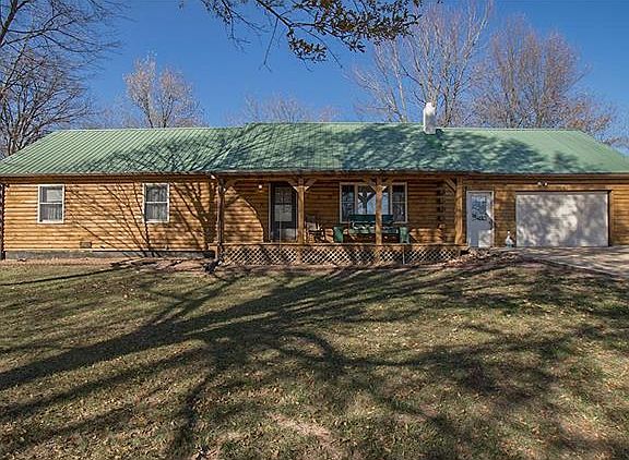 Welcome to the country! This 1500+ sq ft log home sits beautifully on 5 +/- acres just outside of Bonne Terre city limits. The home has a 23'x11' sun room attached on the back, that's perfect for large gatherings or relax by yourself and enjoy nature's views. Three nice sized bedrooms with main floor laundry closet and a 14'x20' loft that can be accessed from the hallway, makes for additional sleeping/living area. There is an adjacent closet would make a great spot to open up the ceiling and add a stairwell to the loft. Newer gutters and downspouts accent the freshly power washed logs, making the exterior of the home, shine. Refrigerator, new dishwasher, and the washer and dryer, all to stay. Large open kitchen/dining/living room space with wood-burning stove adds to the charm and warmth of this log home. Two outbuildings equipped with electric complete this property. This one will not last, make your appointment today!