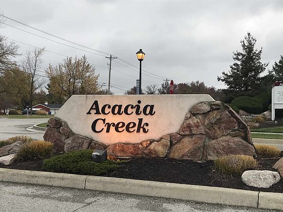 Three days before closing buyer walks. Amazing, almost new ranch with 3 car garage (keypad too) in Acacia Creek! This 3 beds, 2 full baths, over 1,600 sqft offers all the features and amenities today's buyers are searching for. Move in ready. Kitchen has a large pantry, loads of cabinets, breakfast bar, stainless steel appliances, including a refrigerator, washer and dryer (white in color) (not warranted or guaranteed). Vaulted ceilings in the great room, gorgeous stone fireplace, natural sunlight streaming throughout this home PLUS, to top it off - incredible pond view, privacy and sunsets. An additional porch with footers was added. You'll feel right at home. Schedule a tour and enjoy all that this home has to offer. Additional Info: Third bay in garage has been enclosed with a door for a storage room. Two ex-large sliding glass doors. Several ceiling fans have remotes. Soft shade blinds- some are room darkening.