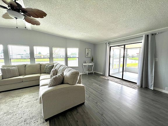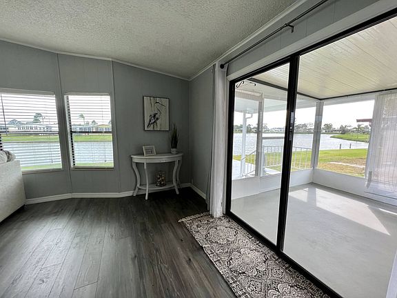 8103 Lake View Dr S, Colony Cove North/Lakes Section, 55+ age qualified, pet and golf cart friendly community. Homes are on leased land. Community application & approval with credit/background check required. Amazing water views from all the living spaces welcome you home every day in this spacious 1352 sf Palm Harbor home with vaulted ceilings. There is a side set 10 x 21 ft screened lanai with full view of the waterfront along Long Lake. It is South/Southwest facing for stunning sunrises and sunsets! This is a rare find with a reverse floor plan where all the living space faces the waterfront for a full panoramic view of Long Lake! The screened side set lanai makes the picture complete to enjoy the lake and all the wildlife including a multitude of water fowl such as white pelicans, roseate spoonbills and much more! There is a poured concrete patio (14 x 14) for many possibilities such as a fire feature patio, outdoor kitchen, hot tub or sun bathing/lounging area. Put up your feet up and just enjoy paradise! Under the rear roof overhang is even more room to enjoy the water views. The 2 BD/2BA fully furnished home features a cabinet packed kitchen with an island for extra prep space or casual dining area. You will appreciate the trendy lighting and upscale furnishings. The open concept of the living/dining/kitchen plus lanai makes entertaining family and friends easy! You will love the living space with the vaulted ceilings and matching laminate floors throughout. The dining room has a built in china cupboard for displaying your treasured items. The owners bedroom suite has a large double door closet with built in storage that is enough for two people. The en-suite bath with walk in shower and a garden tub makes your oasis complete! There is a walk-in closet in guest bedroom as well as a full second bath just steps away with a shower/tub combo. It has a trendy sink, updated lighting and newer vanity. The newer washer & dryer are conveniently located inside the home with plenty of extra storage room. The large shed has a workshop area and even more storage . The extra long driveway has plenty of room for at least 3 cars. A new shingle roof was installed in 2018. Call us today for a private tour! Florida MH Sales, LLC cannot guarantee or warrant the accuracy of this information, measurements or condition of any property. The buyer assumes full responsibility for obtaining all current rate of lot rent fees and pass-on costs. Lot rent is set by the community and is subject to change. The buyer is responsible for obtaining all rules, regulations, pet policies, etc., associated with the park from the community administrative office. Florida MH Sales, LLC is not responsible for quoting of fees or policies. Monthly lot rent includes: Lawn Care Water, Sewer & Trash Ad Valorem Taxes (For comparison, these 3 items are not always included in other communities) 24/7 Community Patrol Free Bus Trips to shopping & beach On Site Fire & Rescue On-site Management & Maintenance 2 On-site Fitness Centers Upkeep of all common areas & amenities. AMENITIES: It is a golf cart friendly& pet friendly community. There are 6 heated community pools, 9 halls/amenity buildings, many courts for tennis, pickle ball, shuffleboard & horseshoes, billiards, 2 state-of-the-art fitness centers, 2 libraries & a coffee bar. Do not forget the fishing pier & 100 slip Marina (nominal fee)! There are a multitude of clubs for most every interest including arts & crafts, boating, wood working, bowling, golfing plus many more! PET FRIENDLY: 2 per home; max 75 lbs each; non-aggressive breeds. There is a large split dog park (big/little dogs) for our canine friends. Always a full calendar of things to do with golf cart parades, entertainment, dinners, dances, cards and games. Enjoy year around tropical weather, birds & flowers. Live where every