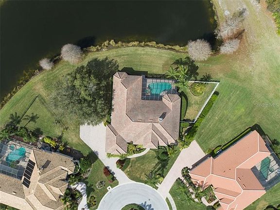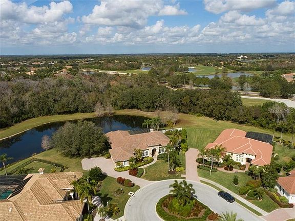 A prime location in a premier Community - offering nearly ½ acre situated on a cul-de-sac with lake and preserve views in the Canterbury neighborhood behind the gates of Lakewood Ranch Country Club. Welcome to the four- bedroom plus den, three bath, pool home, offering amazing waterfront vistas throughout the expansive interior and exterior living area. This well-designed open floor plan is the perfect place to entertain your guests, either inside or out. Comfortable luxury is evident throughout, including the living room, complimented with gas fireplace, the dining area adorned with beautiful chandelier, spacious kitchen, family room, den, and sprawling lanai. Whether hosting large groups or more intimate settings, you will be proud to call this home. The kitchen is a cook's dream with Thermador gas stove top, KitchenAid built in refrigerator and double ovens, wine cooler, ice maker, and Bosch dishwasher. The breakfast bar in kitchen and breakfast nook overlooking pool offer additional casual dining space. Glass sliding doors and numerous windows throughout deliver plenty of sunlight amongst a beautiful backdrop for this nicely appointed home. A generous master suite with access to the pool and lanai, includes a sitting area, two walk-in closets and a master bath with soaking tub, walk in shower and double sinks. The additional three guest bedrooms all offer water views, creating pleasant accommodations for family and friends. The gracious sized fourth bedroom can double as a bonus room with full views of the lake, preserve and access to the pool and lanai. Stepping onto the lanai and pool area, where relaxing, watching the wildlife, taking a swim, or cooking on the grill are great ways to begin or end your day. A convenient fenced in dog run off the lanai creates the perfect space for your pets to enjoy the outside. This home provides opportunity for you to add your personal touch or move right in. Situated in the #1 master planned community of Lakewood Ranch, where you "live, work and play" and there is something for everyone - dining, shopping, entertainment, and everything in between. Lakewood Ranch Country Club offers a variety of membership opportunities, from golf (with 3 championship courses), social, tennis, pickleball, fitness and two award winning Clubhouses. Do not miss an opportunity to live in a prime location, enjoy a beautiful home and embrace the lifestyle you desire and deserve!