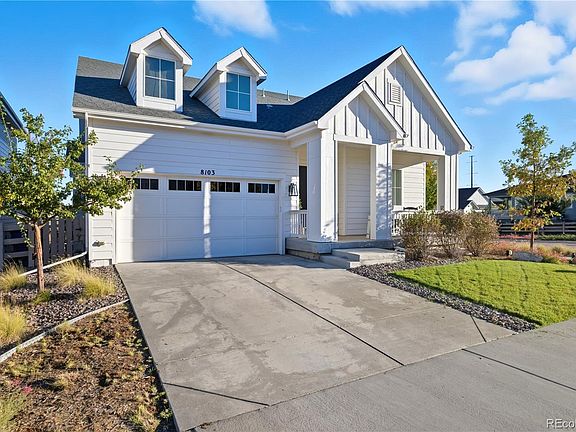 Welcome to your charming dream home, a beautifully appointed Sterling Ranch home nestled between Roxborough and Chatfield State Parks, perfectly blending refined style, comfort, and Colorado’s outdoor lifestyle. The main-level primary suite is a serene retreat, featuring a luxurious ensuite, walk-in shower, dual sinks, and a custom closet. With 10-foot ceilings, an open loft inspired third bedroom, this home is bright, airy, and ideal for both relaxing and entertaining. The chef’s kitchen is a true centerpiece, with bold blue cabinetry, white quartz countertops, a large island, walk-in pantry, butler’s cabinet, gas range, and double conventional oven, flowing seamlessly into the formal dining and living spaces. Upgraded lighting, luxury vinyl flooring, and abundant natural light create a warm, inviting atmosphere. A garden-level unfinished basement offers endless possibilities, and with Southern sunshine at the front, this corner lot is perfect for bright summer days and cozy Colorado snow days. Step outside to the oversized deck and fenced backyard, perfect for morning coffee, evening gatherings, or watching Colorado sunsets. Comfort and convenience abound with central AC, forced-air heating, a home office, and a cozy fireplace. Sterling Ranch residents enjoy 3,400+ acres, 30+ miles of trails, parks, playgrounds, gym, pool, clubhouse, and vibrant amenities including a brewery, coffee shop, and healthcare services, plus annual Colorado State Parks passes. Charming, sun-filled, and perfectly designed, this home is ready for your Colorado lifestyle. Schedule a private tour today and discover why Sterling Ranch is so special.