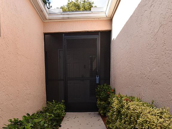 Turnkey furnished option. Designer style upgraded Chateau villa end unit with water view. New fully paid roof and gutters (11/2024). New 3-ton 15.2 SEER2 HVAC system (8/2024). New hot water heater (2023). The villa is secured with complete high impact doors and windows, including the floor-to-ceiling Florida room sliders and garage door. The original exterior sunroom was legally enclosed creating an interior air-conditioned Florida room with a PBC building permit. The villa is now 1409sf under air, the largest in Eastgate! With the revision, the villa is now stepless from the driveway, throughout the interior to the backyard brick pavers patio overlooking the water. The end-unit wall faces east, avoiding the hot afternoon sun, with 4 windows, one for each bedroom and bath. The windows provide an abundance of cheerful light complemented with plantation shutters throughout. The living area vaulted ceiling is finished with designer tongue-and-groove planking. The remaining ceilings are upgraded with a clean, modern finish. A pocket door provides separation between the interior laundry room and kitchen. The other interior doors are shaker style solid wood finished with designer upgraded hardware. Each closet is upgraded with modern, fully customizable shelving. You can easily redesign the layout of each closet to your preference without needing any tools! The flooring includes ceramic tile in the baths with the remainder in new luxury vinyl planking. Modern 6" baseboards complement the floors. Both bathrooms include frameless glass enclosures with modern style swinging doors. The primary ensuite includes two sinks and two full size closets. The ageless shaker style theme extends to the kitchen and bath cabinets, providing a fully coordinated look. A custom opening was added to the wall between the kitchen and foyer, creating an airy, open feeling. There is a tranquil view of the water from the living area. The attached single car garage includes two overhead storage racks. Combined with two driveway parking spaces, a total of three designated on-site parking spaces is tremendously convenient. As you walk through the home consider how expensive it would be to add the included features - especially at current construction prices! Whisper Walk is a 55+ gated community set on 300 acres with lakes and extensive open landscaped areas for walking and biking. Active adult community amenities include tennis and pickleball courts, large pool/deck area w/spa, fitness center, sauna and clubhouse. Maintenance includes security gates, insurance on building, water, fiber optic internet and cable TV, and lawn care.