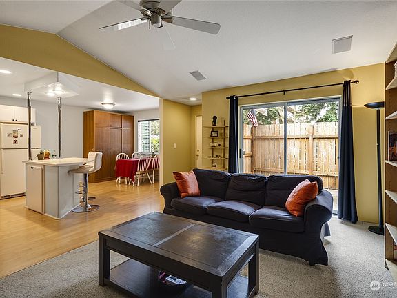 Rare Single Level Accessible Rambler Condo with Vaulted Ceilings, No Upstairs Neighbors & Large Private Patio! You'll love the open floorplan with the well appointed island kitchen with abundant counters & storage overlooking a spacious large, bright living room & cozy connected dining room. The primary bedroom is large & private featuring lots of closet space. The second bedroom also well sized with great closet space. Both bedrooms share a full bath with tub/shower as well as full size laundry. Don't miss the huge, private & fully fenced patio area, the many updates throughout this impeccably maintained home and the healthy HOA with low dues. Moments to downtown Edmonds & quick walk to local shopping, restaurants & express transit.