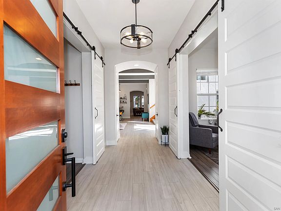 Stunning home, with Coastal-Modern aesthetic design in the highly coveted neighborhood of Saddle Ridge (right next to Olivenhain Pioneer Elementary School). This 4526 sq. ft home sits on over a quarter acre lot and has been completely updated with an artistic touch and custom finishes throughout. This light and airy home features 5 bedrooms, 4 1/2 bathrooms, a dedicated office, play room off the family room and so much more. The main floor has a private guest bedroom with an ensuite bathroom. Custom barn doors were added for that special touch. The designer has completely opened up the home utilizing the space to its full potential. Upstairs you will find 4 additional bedrooms including the tremendous master bedroom with fireplace, large bathroom and huge closets. Also located upstairs is a great bonus room or office and laundry room for your convenience. Just as welcoming as the interior, the private expansive yard is an entertainer's dream. This tropical yard features a salt water pool, with a tv & seating area, an outdoor living space with a movie theatre and fireplace, a BBQ, a dining table and plenty of grass for kids to play. Dual A/C units, 50 AMP in garage for EV charging and a 3 car garage. Walking distance to elementary, middle and high schools and close to great shopping, restaurants and beaches. This is truly a very special property.