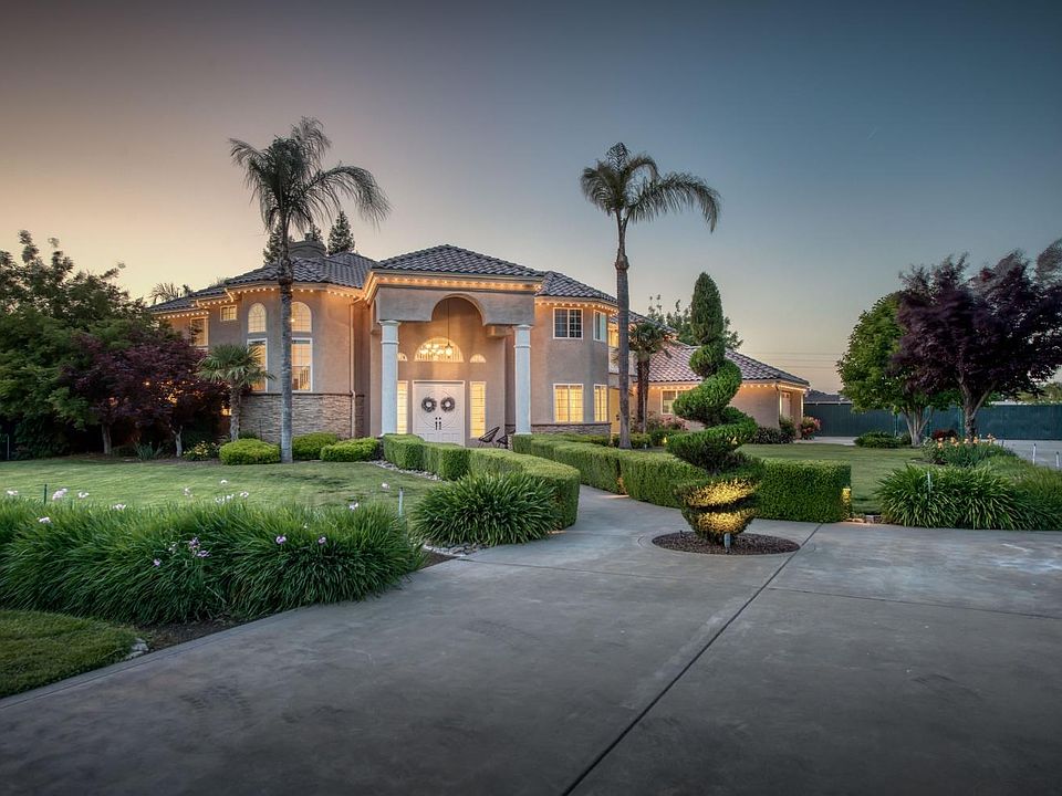 Spectacular Mediterranean inspired estate located in the heart of Clovis! One of a kind custom home situated on a private manicured 2 acres. Open concept 5,315 sqft features owned solar, 4 bedrooms, 3 full bathrooms, 2 half bathrooms, 2 bonus rooms, a loft, 2 balconies, a 3 car garage, and much more! The kitchen is a chefs dream featuring top of the line appliances, including a built-in Sub-Zero fridge, double ovens, warming drawer, gas stove top, walk-in pantry, granite counters, butcher block island, and bar area. The formal dining room is connected to the kitchen by a spacious butlers pantry. Oversized great room offers surround sound and an additional bar area complete with a built-in wine fridge. Primary suite is located on the ground floor offering a resort style experience with a large sitting room, double sinks, spacious shower, jetted soaking tub, and 2 large walk-in closets. Also on the ground floor is a guest bed/bath, laundry room, and guest half bathroom. Head upstairs using one of the two staircases where you'll find a spacious loft, 2 bonus rooms, and 2 bedrooms connected by a bathroom. The backyard features a beautiful solar heated pool, spa, water features, built-in fire-pit, and covered outdoor kitchen perfect for entertaining. Plenty of room for a future guest home and/or shop! Property is fully fenced including an automatic front gate. Located within the award winning Clovis Unified School District!
