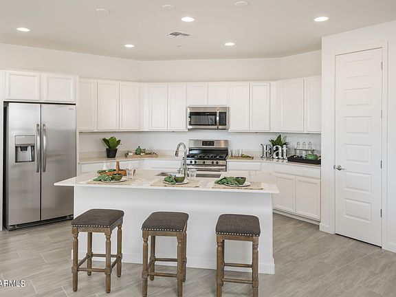 A collection of brand-new single-family homes located in the master-planned community in Mesa, AZ. The community feeds into the highly rated Gilbert Public School District, making this an ideal place for growing households. There are many onsite amenities at the masterplan everyone will enjoy, including a swimming pool, basketball court, pickleball court, playground and picnic area. Commuters have easy access to Loop 202 and Phoenix-Mesa Gateway Airport for travel accommodations. This beautiful home features our platinum package including Sonoma Maple Linen Cabinets and quartz countertops. Super luxury 8 x 36 tile flooring. A public report is available on the Arizona Department of Real Estate website.