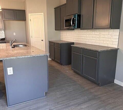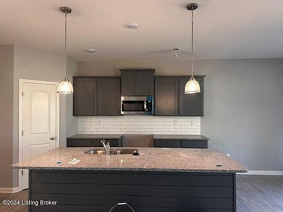 The heart of this home is the beautifully designed kitchen featuring chic gray cabinets, exquisite granite countertops, and a generously sized island that not only provides ample prep space but is also perfect for dining. The stainless-steel appliance package which includes a range, dishwasher, microwave and side by side refrigerator, adds a touch of sophistication and convenience for all your culinary endeavors.
