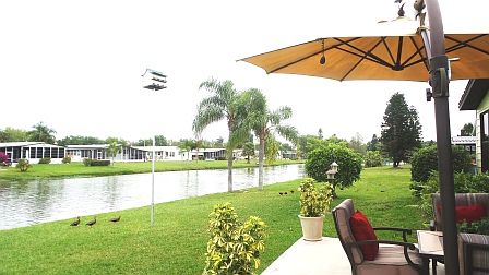 Best View in Colony Cove! This gorgeous and very spacious home has several areas to enjoy the views of the lake and the nature Colony Cove has to offer. The lower lanai has new slider vinyl windows and screens and stunning ceramic title flooring, brings the total square footage of 2286 ft.²of incredible living space. Enjoy afternoon cookouts from your backyard patio or evening sunsets in the glass enclosed sunroom. On cooler days you may like to enjoy a morning cup of coffee or evening cocktail in your vinyl lanai all while overlooking the water. You will appreciate a large attached utility room that houses the washer and dryer with excessive storage that has a AC unit. The roof is brand new in 2020 and offers a transferable warranty to the new owners. Air conditioning system is new in keeping you cozy and cool in the warm summer months. The large carport easily houses 3 vehicles and a golf cart! The landscape around this house is impeccable, with solar lighting that was just installed. You will fall in love with your large bright kitchen with white cabinetry, new stainless steel appliances and New granite countertops and tile backsplash. There is an abundance of counter space, a breakfast bar, and large pantry. You will find a spacious and bright dining and living area off the magnificent kitchen. The Master Suite includes a sitting area and walk in closet. The ensuite bath has double sinks, plenty of storage, a vanity area, and double enclosed shower with sitting area. The Guest Suite is quite large with a guest bath across the hall featuring a new vanity, high profile, water saving toilet. This home features high vaulted ceilings to enjoy throughout the home. This home is move in ready and definitely one you don't want to miss! Lot rent &1,133.47/mo. All listing information is deemed reliable but not guaranteed and should be independently verified through personal inspection by appropriate professionals. Integrity Mobile Home Sales cannot guarantee or warrant the accuracy of this information, measurements or condition of any property. Measurements are approximate. Lot rent subject to change.