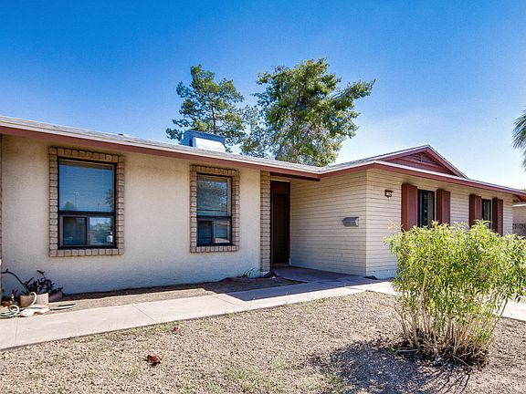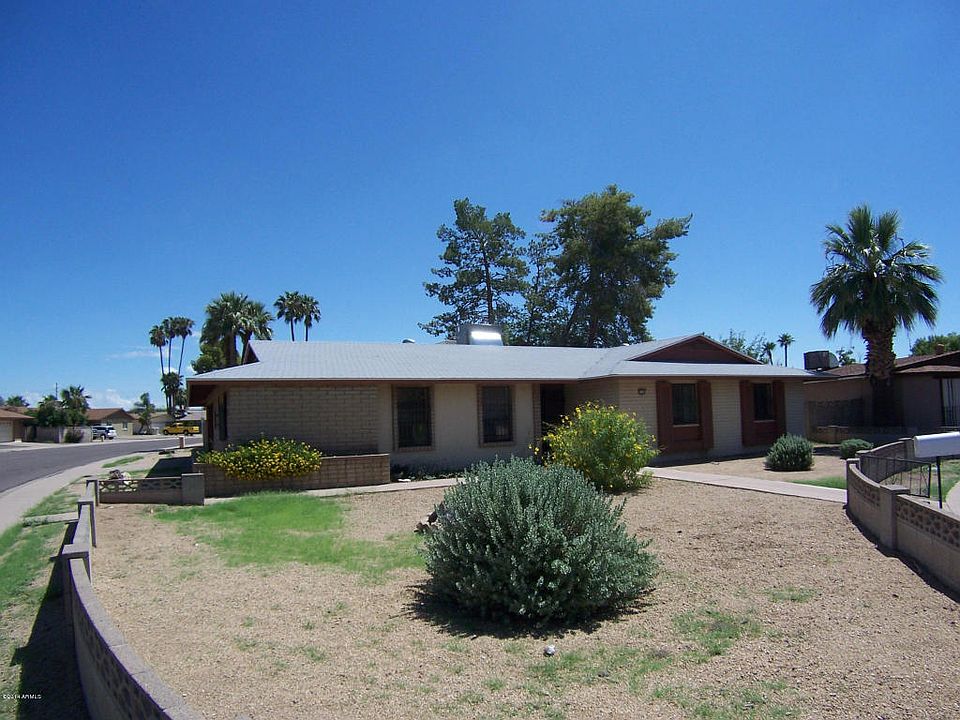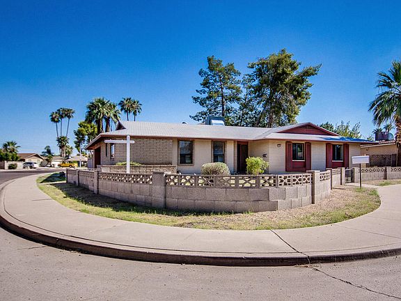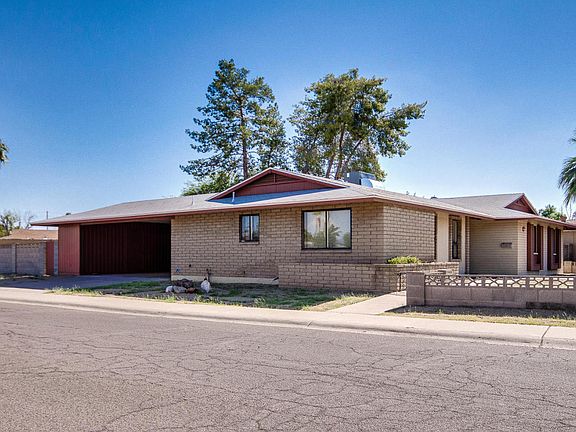 Updated, Mid-Century Classic on Large, Corner of Cul-De-Sac Lot! Fresh Interior Paint, New Neutral Carpet & Loads of Re-finished, Original Wood Floors! Formal Entry Leads into Formal Living, Plus Family Rooom with Cozy, Corner Fireplace! Updated Kitchen has New Appliances and Updated cabinetry. There is also an Arizona room which would make a Play or Exercise Area! Master bedroom will spoil you with Spacious bath and Door to Backyard. Huge Corner Lot with Mature, Easy-Care, Desert Landscape. Great curb appeal in a Popular neighborhood. Also offers Double Windows for Energy Efficiency, Recent Re-Roof, Block Fencing, Side Facing Carport Could be a Garage Easy!