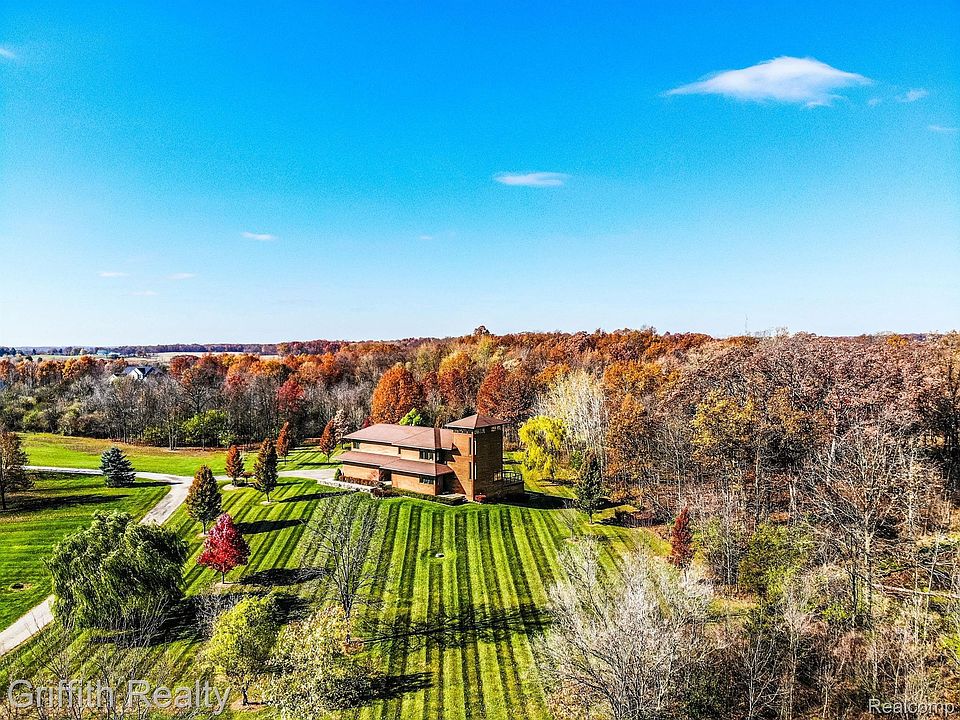 This home beautifully combines architectural distinctiveness with a deep appreciation for its natural setting, ideal for those seeking a serene and visually engaging living environment. Masterfully unique, prairie-style home serves as a stunning retreat nestled on 10 acres in Bridgewater Township, offering panoramic views of the surrounding mature landscape and frequent wildlife sightings. 3 bedrooms, 3.5 baths, walkout lower level. The open floor plan allows for an abundance of natural daylight. Open kitchen designed for both functionality and social interaction where entertaining becomes easy. The Tower is spectacularly designed to function as the home office with 360-degree views. The primary bedroom is thoughtfully positioned on the second floor, providing a private sanctuary apart from the main living spaces. Additional 2nd-level notable features include a washer/dryer, a "speakeasy" type additional storage room, and a multipurpose loft area. This elevated location maximizes the property's expansive view, making it a perfect place to start or end the day. The lower level walkout adds approximately 891sq. ft. Saline schools is an added bonus!