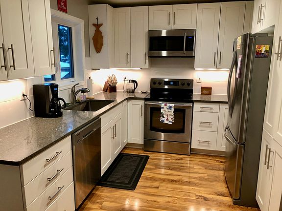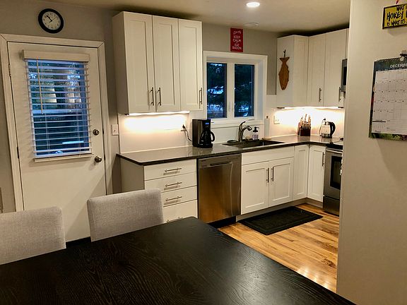 Turn key, recently renovated contemporary 2 bedroom 1.5 bath attached home with single car heated garage and large fenced yard on quiet cul-de-sac in the heart of the valley. Features include high end laminate flooring throughout kitchen and living room, new carpet, remodeled kitchen with quartz counter tops, remodeled upstairs bath with double sink and Kraft-maid kitchen height sink base and new tub and surround. Master bedroom has two traditional bi-fold remodeled closets with new doors & internal organization, and 2nd bedroom has walk-in-closet. New front door in 2017. Recently added 1/2 bath on main level. New energy efficient windows in 2015. Extremely energy efficient home. Toyo stove with electric baseboard backup. Remodeled garage with lots of storage and nice workbench. Washer/Dryer in garage. Lots of parking. Large fenced back yard with large deck and fire pit area. Serious inquiries only. PM to set up appointment to show.