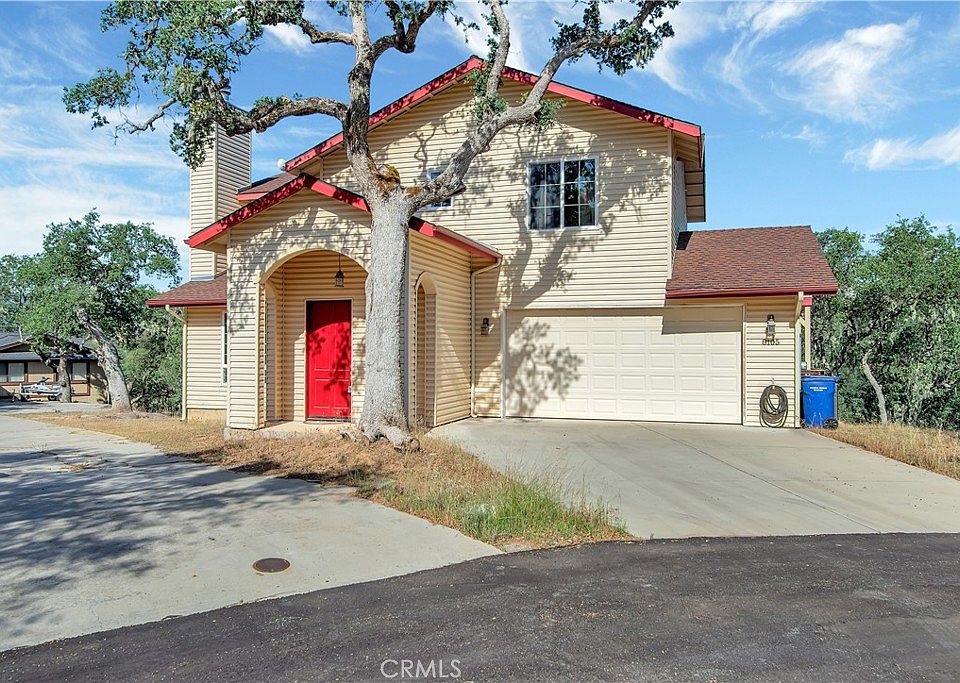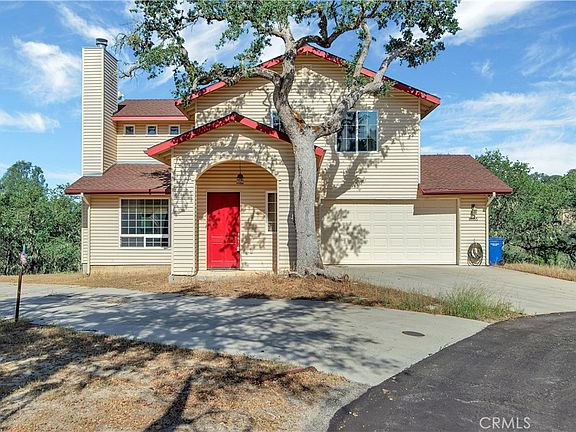 Perfect one owner home at the end of a cul de sac for lake life living! Current owner built this home in 2006 after searching for the perfect location in the gated community of Oak Shores. Enter into the foyer straight into an open concept living room/kitchen/dining combo with a wood burning fireplace & an adjacent half bath. Step out onto the large exterior covered solid surface deck for fantastic oak tree filled mountain and canyon views. Upstairs is the bedroom wing with a large primary suite with a luxary granite topped dark wood vanity with dual sinks. Primary bath has a jet soaking tub/shower combo as well and a large walk in closet. There is also a large slider that leads out onto another large solid surface deck. A matching guest bath with a shower tub combo is perfect for the adjoining two guest bedrooms. One of which also as a large slider that leads out to the deck. Plenty of space in the two car garage for your boat and lake toys. Partially furnished. Decks are in need of repairs.